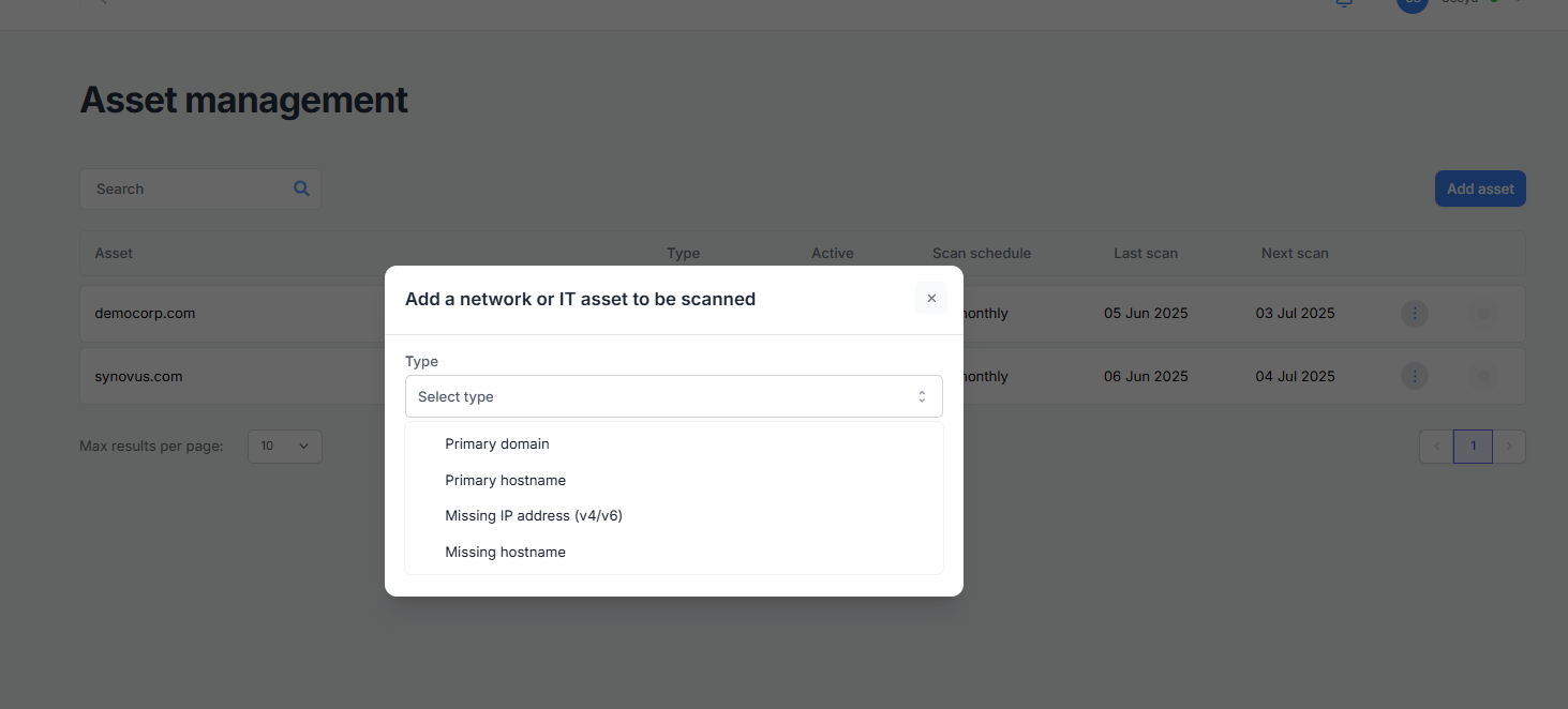 - A missing IP address: an IP address that our scanners may have missed when enumerating your footprint. The IP addresses you add must be assigned to one of your main domains or hostnames, and you must declare that this IP address is used exclusively by your company.