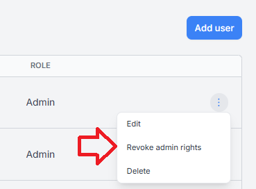 Admin rights can be managed from the three-dot menu.